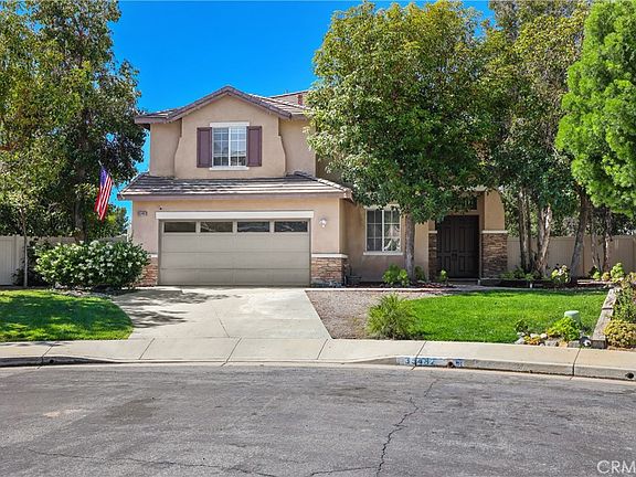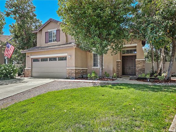 **PRICE IMPROVEMENT**Welcome to this meticulously maintained 4 bedroom, 2½ bath CUL-DE-SAC home with a BONUS ROOM that is the perfect blend of comfort, style, and functionality! You will be impressed the minute you enter into the home, with the expansive brightly lit living room, cathedral ceilings and inviting open layout! The entertainer's kitchen flows seamlessly into the spacious family room, which adorns a beautiful fireplace and views to the backyard, creating a dynamic hub for socializing! With modern appliances, ample counter space, kitchen island, and tasteful finishes, this space is both functional and inviting! The private dining room is perfect for intimate dining, or large family dinners! There are 3 spacious rooms upstairs, along with an oversized primary suite, offering a serene escape, complete with luxury flooring, boastful walk-in closet, seating area and stunning views! There is also a main floor bonus room that is ideal for an office space or an additional 5th Bedroom for your guests! The POOL-SIZED BACKYARD has an enchanting secret ROSE GARDEN with a picturesque pond, charming bridge and soothing waterfall- it is truly a breathtaking escape! With a newer AC system, whole house fan, water filtering system and leased solar panels for eco-friendly living, this is more than just a house—it's your new home in an idyllic setting! Come and experience one of Wildomar's finest- the highly desired combination of convenience and community living at The Ridge! Your dream home awaits!