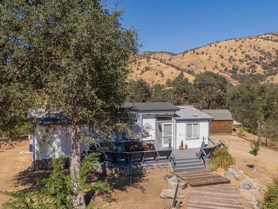Welcome to this rare and well-maintained 3/2 manufactured home located on Hwy 180. Situated on over 3 acres of elevated land, this property boasts incredible views and breathtaking sunsets. The spacious decking and outdoor sitting areas provide the perfect space for entertaining and relaxation. The property also features a spacious finished detached garage that could serve a variety of purposes, as well as a storage container and loft shed for additional storage space. With an easy commute of just 30 minutes to the Central Valley or Kings Canyon/Sequoia, as well as close proximity to local amenities including but not limited to a coffee shop, gas stations, library, and Dollar General, this home offers both convenience and tranquility. Don't miss the opportunity to make this dream home your own. Schedule a showing today and see for yourself the beauty and potential of this property. This home is on a 433a foundation.