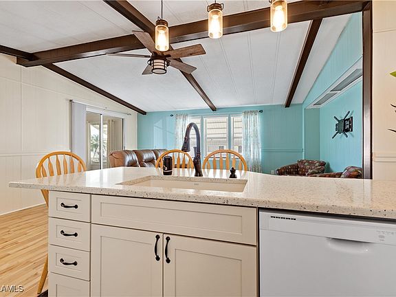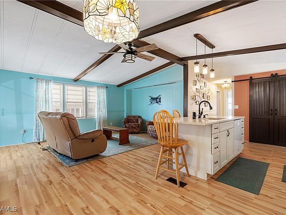 This stunning, well-maintained home in the sought-after Tamiami Village is filled with stylish upgrades and thoughtful details throughout. Updates include new windows throughout the entire house and sunroom. Laminate flooring flows throughout the main living areas, sunroom is tiled. The spacious living room is adorned with beautiful wood beams on the ceiling, adding warmth and character to the space. The home also features brand-new, energy-efficient windows, new siding and a durable engineered metal roof with stainless steel screws, and freshly installed siding—providing both beauty and peace of mind.