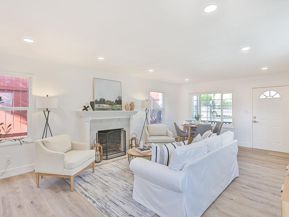 This charming and bright SFH features 4 bedrooms and 2 baths located in the Harrington neighborhood of Oakland. Open floor plan with lots of natural light, spacious living room and dining room combined. Beautiful fireplace w/ moulding and mantel. Renovated kitchen with new stainless steel appliances, new soft close cabinets, quartz countertops w/ Sande Grey Hexagon backsplash, new faucet, new lightings, new sink, new garbage disposal. Laundry area. Upgraded baths w/ quartz countertops, beautiful tile floor and quartz backsplash. New vinyl floorings. New paint interior and exterior. Solar panels that help keep utility bills next to nothing. A Bonus room that can be used as an office / zoom room. Long driveway with room for multiple cars. Minutes to BART, AC Transit, shops, restaurants, easy access to the freeways. Lots of character. A Must See!!