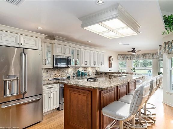 WHAT A VIEW! Step through the front door of this BETTER THAN NEW 2BR/2BA home and you'll see one of the best views in Highlands Ridge with the pond, golf course, and preserve area in the back yard. This UPDATED & UPGRADED home has many nice features to enjoy starting with the custom designed kitchen with glazed wood cabinets, granite counters, stone backsplash, GE Café Series SS appliances, planning desk & an island with contrasting cabinets & butcher block top. It is adjacent to the dining area & open to the spacious great room with vaulted ceiling, triple pocketing sliding glass doors & hardwood floors. The owner's suite has a spacious bath with granite topped double vanity, walk-in shower & jetted corner tub. The large walk-in closet is sure to please. The guest bedroom with bay window, and updated hall bath can be separated by a pocket door from the rest of the home for privacy. The large covered and screened lanai is accessible from the dining area, living room & owner's suite, and offers a lovely view of the pond, golf course & preserve area. A small patio area is great for grilling. Other features include a newer roof & over-sized two-car garage. Don't delay! This gorgeous home, located on a quiet cul-de-sac, won't last long!