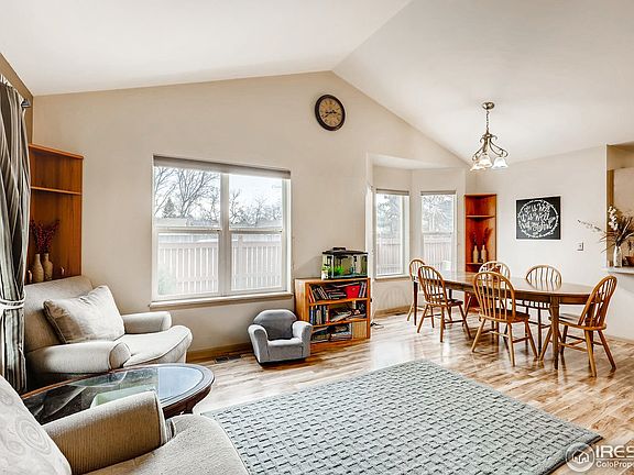 Fantastic 5 bedroom ranch-style townhome in southeast Fort Collins! Boasting an open floor plan, this end unit features a spacious kitchen, vaulted ceilings, a main level master and second bedroom or office. Fully finished basement with three additional bedrooms, bath, and sprawling rec room. One car detached garage, carport and additional parking. Newer furnace, AC, paint and flooring. Super close to schools, shopping, and public transportation. A rare find -- and terrific value!