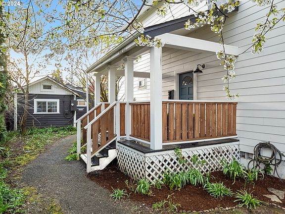 Charming Victorian farmhouse with studio apartment, nestled in the popular Foster Powell neighborhood! This unique and welcoming home was completely renovated in 2005. Relax with your morning cuppa on the front porch, and enjoy the warm, airy and light-filled open living space once inside. Wood floors, a spacious kitchen with dining nook, a laundry area and a full bathroom complete this functional main floor. Enjoy the convenience of having both bedrooms and a 1/2 bathroom upstairs. The unicorn you will find on this property is a permitted, cozy studio apartment with a separate kitchen and bathroom, and its own address! It has been a successful long term rental for many years. Rent it out for additional income, use it as an art studio, or as a peaceful retreat to indulge in hobbies and relaxation. A fully fenced backyard as well as a sweet and sunny front yard are perfect for entertaining, garden beds and more. The location of this home is truly unbeatable. With a walk score of 81 and a bike score of 100, you're just a short stroll away from parks and the vibrant shops and restaurants of Foster Powell (affectionately known as Fo-Po). Hop on the bus or take a leisurely bike ride to the lively Division, Woodstock, and Hawthorne districts. You will also be impressed with the 9/10 Home Energy Score! A truly special place to call home in the heart of Portland's vibrant Eastside. [Home Energy Score = 9. HES Report at https://rpt.greenbuildingregistry.com/hes/OR10226817]