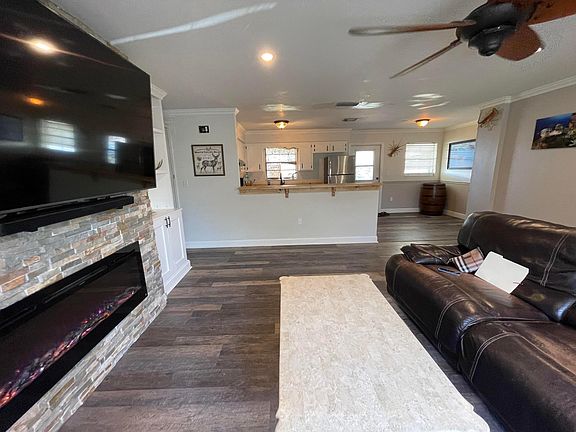 Newly Renovated! Open concept and split floor plan! The laundry room large enough to turn into a master bathroom. Butcher block counters, new appliances, Fireplace with custom stone surrounding, new ceilings, recess lighting in all rooms, life proof flooring, farm sink over looking back yard which is completely fenced in. Huge dome metal barn (20 x 22)! Night vision security cameras. Roof is 4 years old. Shed