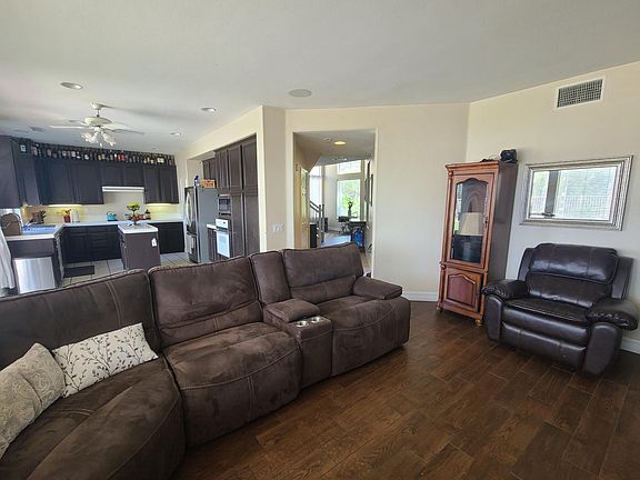 Lovely home in much desired Sierra Del Oro area of Corona. Three bedrooms and an office/movie room. Upgraded ceramic wood floors downstairs. Astro turf and concrete installed in the back for nice evening dinners. Home has beautiful view of city lights and mountains. 5 minutes from Skyline hiking trail, and several trails in walking distance from home. Renter is responsible for all utilities. No pets allowed because of the astroturf. No smoking indoors. Fridge included, Garage fridge. Renter responsible for lawn care.