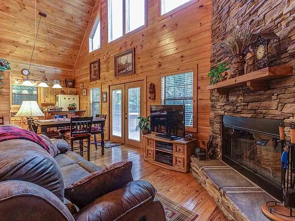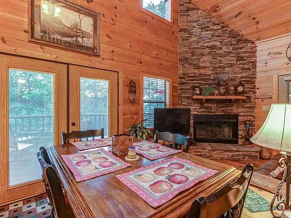 Your dream Smokies getaway awaits at this superb cabin on 2 acres in a quiet location just minutes from Gatlinburg and Pigeon Forge. The heart of the home is the great room with a towering cathedral ceiling, wood-burning fireplace, and a wall of windows to the serene forest setting. The kitchen area includes custom cabinets with granite tops and an island with breakfast bar. Both bedrooms are on the main level; the master has an ensuite bath while the second bath is shared. Upstairs the spacious loft includes an upscale pool table and TV area, while under the stairs a cleverly concealed laundry nook makes efficient use of space. The interior is completely wrapped in natural wood from floor to ceiling - no carpeting here! Outside the half-wrap deck has open and covered areas for rocking, grilling, and hot-tubbing while enjoying the private wooded setting with seasonal mountain views. The land consists of 2 lots with the option of building a second cabin if desired, and there's a large fenced yard (perfect for pets), a storage shed/workshop with lights & electric, a woodshed with fire pit, and the rarest of features: plenty of flat paved parking! This one-owner property has been meticulously maintained, never on rental, and has far too many features to include here ... contact your agent today for a full list and to schedule a showing, this is your Smoky Mountain dream!