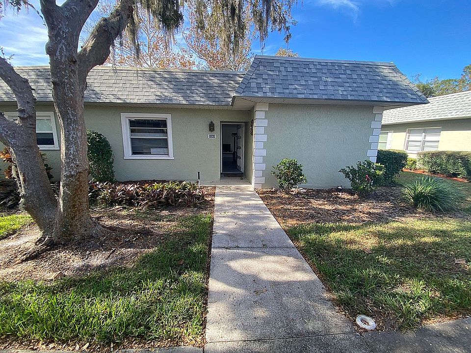 Completely updated spacious corner Villa with a screened in lanai (add 120sf more). Very private setting since this building sits further towards the golf course and has more green area in front of the building. AC unit located on the roof so no noise here (many units have AC unit on the patio). New shaker style soft close kitchen cabinets, New granite countertops, New subway backsplash. New washer/dryer in the kitchen!, Newer refrigerator, water heater. New porcelain floors throughout kitchen, dining, bathrooms ,living and lanai areas. Luxury waterproof vinyl in both bedrooms.Completely remodeled master bath with a gorgeous shower! New vanity in second bath. Master bedroom has a huge walk in closet and sliding doors to eh lanai. All POPCORN ceiling removed and lighting is updated. New backyard concrete patio, New screens in lanai.CARPORT parking plus one extra, and visitor parking. Generous size storage shed, Must see unit, priced to sell, Motivated seller. Partial owner financing if needed. LOW HOA includes: 24/7 GUARD, WATER, INTERNET, CABLE, INSURANCE , BUILDING; GROUNDS MAINTENANCE