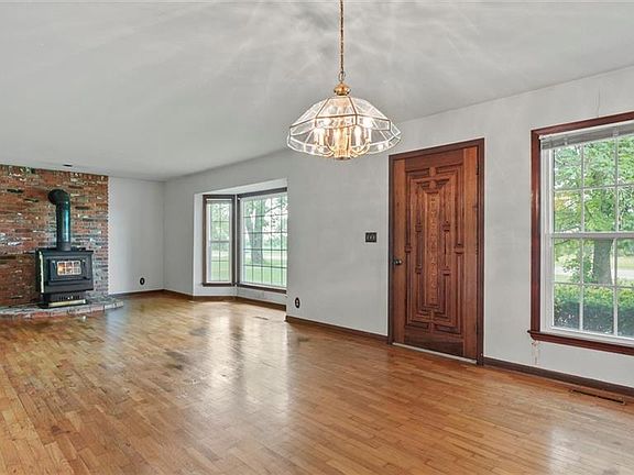This one owner ranch-style home offers hardwood floors throughout. Big living area with woodburning stove that warms the whole house cutting those winter bills down The dining area boasts a charming fireplace, creating a warm and inviting atmosphere for gatherings. Convenience is at its best with main floor laundry, ensuring ease and efficiency in your daily routine, Newer windows