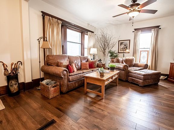 Beautifully maintained 4 bedroom, 2 bath home on a large corner lot. Updated throughout from hardwoood floors, paint, updated lower lever bathroom and a full new kitchen with solid stone surfaces and stainless steel appliances. Tons of light to show off the hardwood floors in the main area and carpet in bedrooms. Main floor laundry. New landscaping and an oversized 2 car detached garage to make this home even more appealing. Large wrap around porch to enjoy your morning coffee on evening dinner.