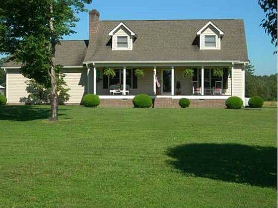 Bring the horses! Cleared & level - 3.7 acres go with this warm feeling family home. Large bedrooms, wonderful brick fireplace & delightful rocking chair front porch. Property line on right side is between the line of sellers' Bradbord Pear trees & neighbors fruit trees & goes to the tree line at back.(Sellers have 2 pear trees on left side of property.) You'd be proud to call this home.
