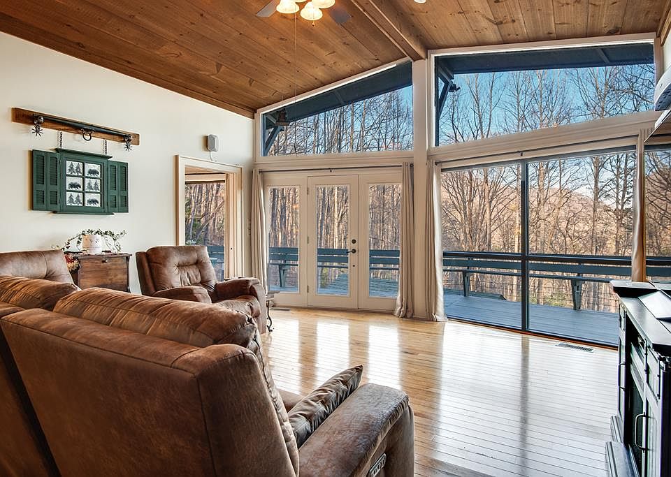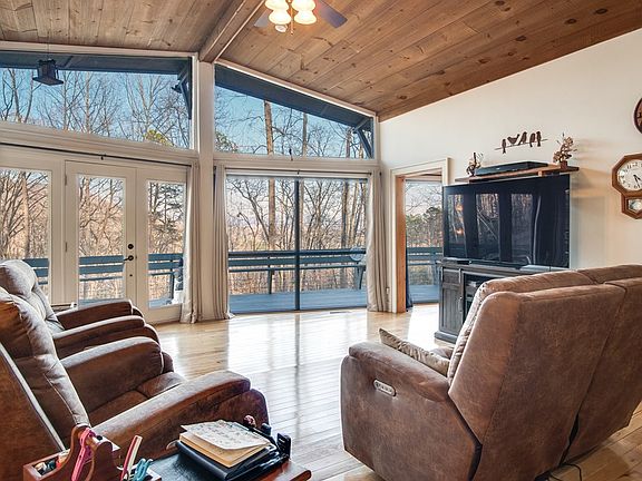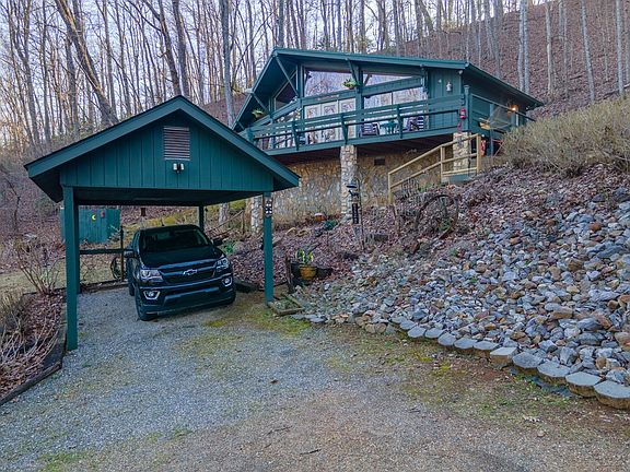 Ever wanted to live in a treehouse?? Here is your chance. Nestled at the back of an established subdivision on a wooded lot, you feel like you are in the trees when looking out the large front windows. Lovingly nicknamed "The Treehouse" by its owners, this home has been well maintained. The layout of the home, with its split 2 bedroom/2 bath configuration and open concept living/kitchen area featuring vaulted ceilings and floor-to-ceiling windows, seems designed to maximize both comfort and connection with the surrounding natural environment. The hickory cabinets and spacious island in the kitchen are not only practical but also add to the inviting atmosphere, ideal for hosting gatherings. The property adjoins USFS and is located near the Bartram Trail parking lot, so you are just a quick walk away from accessing the trail from the front door. Gorgeous winter long-range views and minutes from all of the outdoor amenities our area is famous for, this home is what mountain living is all about!! HOA does not allow any rentals, long-term or short-term. The shed at the base of the driveway is on the neighboring property and does not convey.
