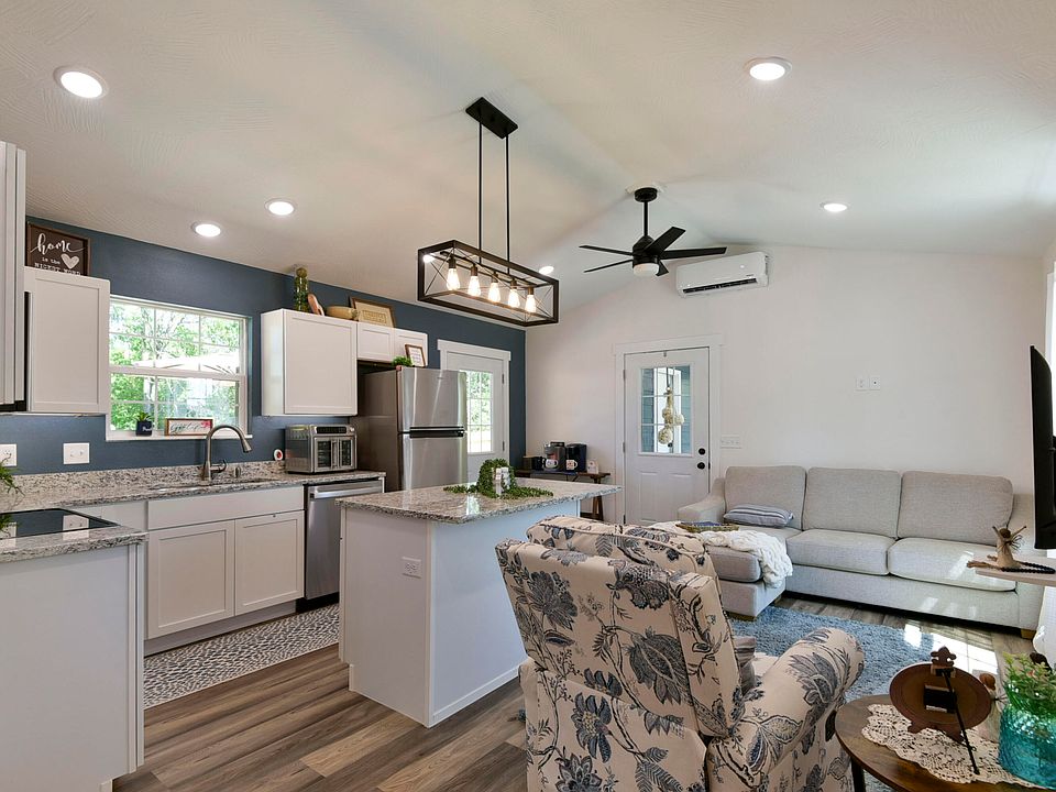 WHY BUY A CONDO WHEN YOU CAN HAVE A HOUSE FOR THE SAME PRICE???Tiny home with huge appeal!!! You have to see all the upgrades, add-ons, and energy savings features of this newly completed home in Hollister. This classy 1 bedroom home is the perfect option for a variety of buyers. The house is positioned on the lot for maximum use of the big backyard with two spacious patios and a privacy fence Everything is on one level with wide doors and hallway. Heated and insulated storage off the carport. Vaulted ceilings give a spacious feel to the great room and the mini-split HVAC system keeps everything cool or cozy depending on your mood (while being very energy efficient). The decor finishes (like granite counters and stylish lighting) are just another example of why this home belongs on your Short-List!!! Close to historic Downing Street, Lake Taneycomo and just minutes from all Branson's attractions. Furniture negotiable.