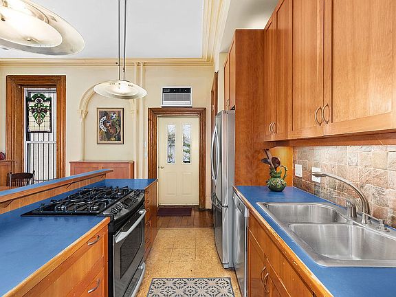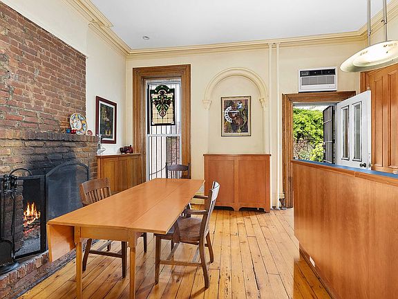 A classic Brooklyn brownstone on a great Park Slope block! 355 Bergen Street is a traditional 19 1/2 ft. wide four-story, two-unit townhouse just two blocks from the borough's best served transportation hub at Barclays/Atlantic Center. The house is laid out with four large bedrooms and a smaller study on the top two floors along with two updated full baths and a laundry room. The parlor floor features 10 1/2 foot ceilings, a powder room, and a big eat-in-kitchen with a center island and a wood-burning fireplace. Traditional oak plank floors can be found throughout. The lovely garden connects with the upper triplex of the home via a deck off the parlor floor kitchen. The ground floor is currently configured as a massive studio apartment with a big kitchen and windowed bath. (Re-combining it with the upper three floors is a simple alteration.) Access to the cellar is via this apartment. This property is unique because the current owners installed solar panels on the roof in 2017, so you'll PAY NOTHING for electricity. The meter literally runs backwards! How cool is that? So four bedrooms plus den, two and a half baths, an eat-in-kitchen with fireplace and a backyard, plus rental income, plus all the shops and restaurants on bustling 5th Avenue, plus Prospect Park, plus the Brooklyn Nets at Barclays Center, plus transportation to literally everywhere. What could be better than that?