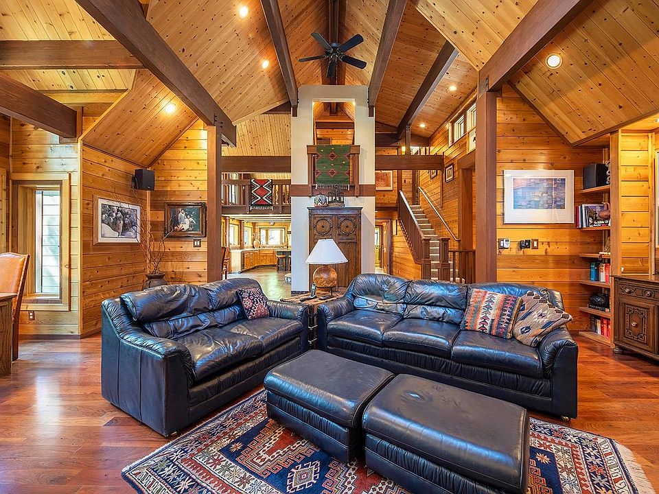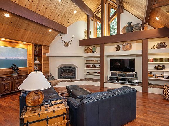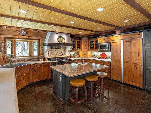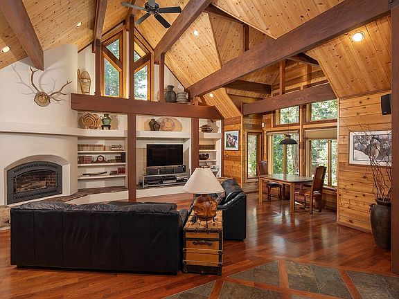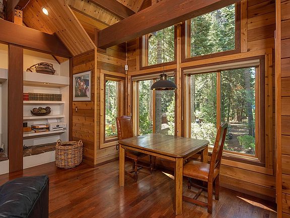 This property is in a quiet neighborhood that is conveniently close to New Moon Natural Foods, Tahoe House Bakery, and Tahoe City shops and services. The cabin was originally built by the owner as a modest weekend getaway but was since been transformed in 2003-2004 into a 3-bedroom home with 3 bathrooms. The top floor is the primary suite with an adjoining loft sitting room/office and closet overlooking the garden. The living, dining, and kitchen areas are open and spacious, with high ceilings that create airy atmosphere. The appliances are well-appointed, ensuring practicality and convenience for full-time owners and visiting family members. Two bedrooms and a hall bath are on this floor. There is a Santa Fe-style gas fireplace in the living room, as well as two free-standing gas stoves in the dining room and primary bedroom. The floors are made of slate, mesquite, and oak, adding to the natural and cozy feel of the home. The house features a deep @900 sq.ft. garage and workshop area, perfect for someone with hobbies or a need for extra storage space- or to park several cars tandem. The workshop could become a wine room, or even a TV room. This entry level also includes a 'mud room', spacious laundry room with storage closets, and the third bath. The back yard is low maintenance and beautifully landscaped with perennial plantings, a water feature, stunning stonework, and meandering pathways, showcasing the owner's creative talent. For boating enthusiasts, there is an optional ¼ interest in a Tahoe Park lot. This provides access to the Tahoe Park Association with two piers, a buoy field, and recreational grounds, conveniently located next to Sunnyside Resort. The exterior construction includes cedar flat-log and cedar siding, stucco, and stone at the ground level, giving it a rustic yet stylish look. Additionally, the layout provides great space for a talented boat-engine builder, who has made room for an additional car with a lift (can be purchased). Overall, this property offers quality materials, thoughtful attributes, and versatile spaces that can be used as they are or repurposed to suit the owner's needs.