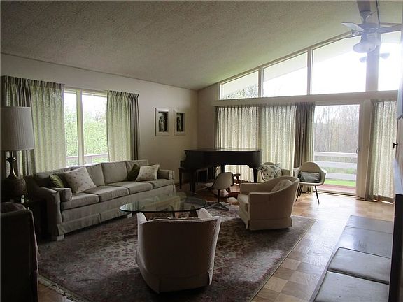 FABULOUS mid century modern ranch - one owner architect designed home with all original details. Idyllic 1 acre private setting. Full walk-out lower level ready to finish plumbed for bath...Hardwoods, 2 fireplaces, deck, 2 car garage. Private showings beginning Monday June 29th due to Estate Sale there this weekend. See exterior drone video attached. More pics after the sale. Tranquil "country" feel yet minutes to all conveniences!! Delayed negotiations until July 2 5pm.