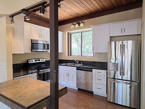 Unwind in the enchanting embrace of Sedona at 355 Canyon Diablo Rd, where this lovely 3-bedroom, 2-bathroom haven awaits your arrival. Nestled amidst the stunning red rock landscapes of Arizona, this 1,456 sq ft home offers a seamless blend of comfort and natural beauty. Step inside to discover a welcoming atmosphere that invites relaxation and rejuvenation. The warm colors of the wood ceiling paneling and exposed beams bring a touch of elegance and coziness to the space. Walk into the spacious living room with floor to ceiling windows that offer gorgeous views of the red rocks and plentiful natural light to fill the room. Laminate floors make clean-up a breeze. All appliances are included for your convenience. The home's location offers easy access to shopping, dining, and the great outdoors, making it an ideal base for exploring Sedona's hiking trails and scenic vistas. Sedona is about 1 1/2 hours from Phoenix, one hour from Flagstaff, and 30 minutes from Cottonwood for additional shopping, dining and activity options. Available: NOW Lease term: 12 months Pets: Max 1 pet with non-refundable cleaning fee Furnished: No Appliances Included: refrigerator, electric stove/oven, microwave, dishwasher, washer & dryer Utilities: Tenant pays all utilities Heating: electric wall units Cooling: Central AC Parking: Large driveway Laundry: W/D in unit Smoking: NO smoking Govt vouchers: No HOA: Village of Oakcreek Security Deposit: equal to 1x rent Application: $60/person (refundable if not processed) Admin fee: one-time 7% of one month's rent $350 non-refundable pet cleaning fee. Tenant Placement services by UNLimited RE. Property will be managed during the lease by the homeowner. Pet Details: No pets allowed