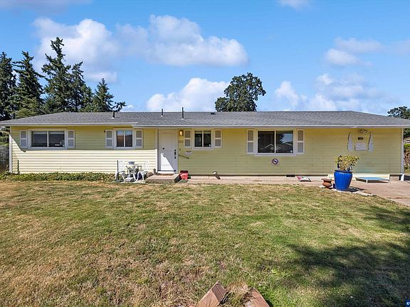 Warm and inviting, this updated single-level home offers comfort, privacy, and peace of mind with vinyl windows, newer siding, gutters, radon system, and efficient gas furnace with AC. Inside: 3 bedrooms, 2 baths, and a bonus room with roll-up door. The primary suite has dual closets and walk-in shower. Enjoy a backyard with fruit trees and berries, plus RV/boat parking. Quiet street, no HOA, minutes to parks, shops, dining, and I-5—move-in ready!