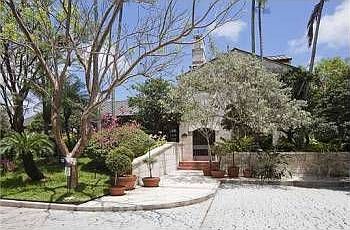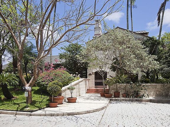 Safe Harbor designed for the serious boater. Built 22 ft above sea level into the natural rock ridge bordering the Gables Waterway.?120 ft of waterfront, 90 ft concrete dock, no bridges to Bay, no mangroves, wide, deep water. Designed by timeless master architect Robert Bradford Browne. Three-inch thick native coral rock veneered walls blend with the natural rock ridge setting and copper roof. Double?living room with 4 sets of French doors on both sides for open air entertainment and cross ventilation, vaulted wood beamed ceiling and keystone and bull-nosed wood burning fireplace, large dining room. Kitchen with breakfast nook and bay window, framed by great water views. Main level also includes 2 bedroom suites. Top story private master suite with a fireplace, dressing area and a private terrace. Level above dock features staff quarters, garages and a large family room open to the terrace overlooking the dock and waterway. Elevator serves 3 levels: main living area, family room and dock. Cocoplum Phase I is a prestigious guard-gated neighborhood centrally located in Coral Gables. Amenities include tennis courts and play ground.