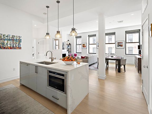 HOA APPROVED PET AMENDMENT! Enjoy sophisticated city living in this stunning corner 2-bedroom, 2-bathroom, luxury loft in Boston’s coveted Fort Point/Seaport district. In an exclusive stand-alone boutique building completely renovated in 2019 of only 11 units, this residence is delivered wholly finished in like-new condition with 10-foot ceilings and oversized windows, bathing the space in natural light and accentuating the hardwood floors. A thoughtfully designed layout maximizes living areas & functionality of private spaces. Huge closets provide exceptional storage, and bedrooms/bathrooms on are on opposite sides. At the heart of the home, the chef’s kitchen is a statement of luxury, featuring custom cabinetry, a Wolf gas range, an integrated Sub-Zero refrigerator, Bosch dishwasher, built-in microwave, and an expansive waterfall stone island—idyllic for both culinary enthusiasts and entertainers alike. Working gas fireplace in the living room. Seller offers $5,000 parking credit!