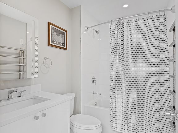 Available 9/1 or sooner! Welcome to 355 Congress! A boutique luxury 9-unit loft building conveniently located in Boston's Fort Point neighborhood. Residence 404 is a 760 square foot 1 bedroom / 1 bathroom floorpan with an entertainment style kitchen/dining/living area. Kitchen features custom quartz island and a well-equipped kitchen boasting Sub-Zero and Wolf appliances. This corner unit offers window exposures on two sides. Steps away from the waterfront in Seaport District! Central air, and laundry in-unit. Tenant is responsible for gas, electricity, cable and internet. First months rent and broker fee due at signing.