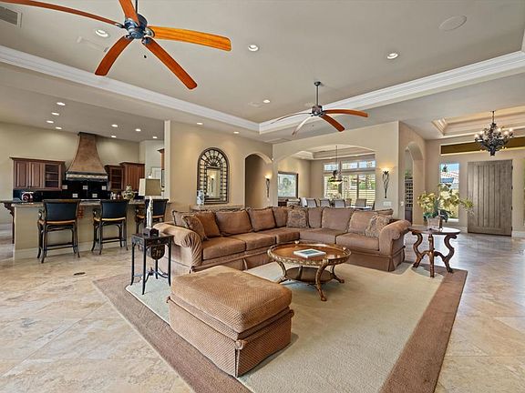 Spectacular Custom Home at The Estates of Desert Falls Country Club in Palm Desert. Situated on a private lake setting with unobstructed mountain views. This Prominent Home is over 4,300 square feet, with 4 bedrooms, 4.5 bathrooms, including an attached casita, and an open floor plan ideally designed for modern living. The gourmet kitchen has been appointed with slab granite countertops, premium appliances, oversized island, and a thoughtful layout that is both open and functional. The Spacious Great Room has soaring ceilings, wet bar, fireplace, high quality built-ins, and large sliding glass doors. All 4 bedrooms include private ensuite bathrooms. Travertine flooring flows throughout the house, with designer carpet in the bedrooms. The resort style backyard has a covered living area, built-in bbq, pool & spa, and amazing lake and mountain views. The 3 car garage is side loaded with an oversized driveway. This property is located behind 2 security gates, and is just minutes from all the best the desert has to offer including the upscale shops of El Paseo, exceptional golf courses, hotels, restaurants, hiking and more.