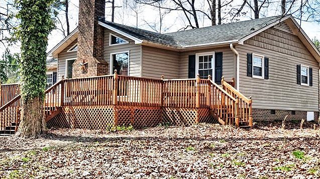 Eligible for USDA 100% Financing to qualified buyers. This home sits on .74 acres atop a hill which yields to a mountainous feel in the country. Home has Extra Large Family room with a fireplace, and book shelving. Home has new luxury vinyl plank flooring installed, all rooms newly painted, new carpeting,and new countertops throughout. Recently closed in garage which added two additional rooms, an extra bedroom, along w/a bonus room which connects to the laundry area.