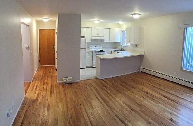 Recently updated, clean, white kitchen. All full size appliances including dishwasher. Beautiful new vanity, sink and tile in bath. All new fixtures throughout. Hardwood floors just refinished. Nice closets in bedrooms as well as entry way coat closet and spacious linen closet. Eat at counter in kitchen. Storage in basement and video security system. Attatched carport. Laundry in basement. Ready for you to move in. Great neighborhood. Non smoking building. Small pets okay $25/mo. Tenant pays 1/12 heat bill and their own electric and cable bill. Owner pays water and garbage.