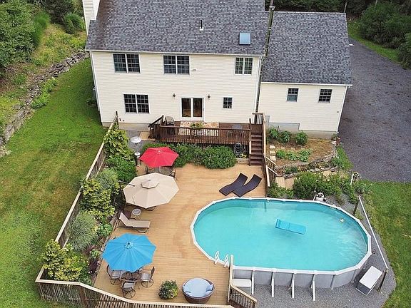 Beautiful country home tucked away in the much desired Minisink Valley School District. Warm and inviting home sits on 8 acres of a park like setting with stonewalls, manicured lawns and landscaped with many perennials. No detail has been overlooked and luxury is noted throughout with custom features and upgrades. No expense was spared in the custom eat-in kitchen which offers plenty of storage and a huge walk in pantry. The maple cabinets and granite counter tops are accented by stacked slate back splash w/ medallion. Enjoy gathering around the oversized center island w/ plenty of seating and a built in SS microwave. Upscale appliances; SS Samsung 4 door- french door refrigerator, SS GE Cafe stove w/ griddle & warmer oven and SS Samsung stormwash dishwasher. Chair molding and picture frame molding in formal dining room. formal living, family room, kitchen and hallway. There is an airtight woodstove for cozy winter nights and an enormous bonus room (22x21) great for entertaining! The entire first floor features 9 ft high ceilings, gleaming hardwood floors, crown molding, recess lighting and plenty of natural sunlight. The second level includes hardwood flooring, Master En suite with a 22x9 ft walk in closet, a second closet 6x6, tiled master bath w/ double sinks, jetted tub & linen closet. There are 3 additional bedrooms, the main bathroom is tiled with granite sink vanity. Enjoy entertaining friends and family in your glorious backyard w/ personal bocce ball court, horseshoe pit, volleyball court and pool with tiered decking. Other features include; whole house generator hook up, two 300 gallon oil tanks, owned water soften system, walk out basement, central air and 3 car garage. There is a plywood floored attic and unfinished basement w/ airtight wood stove for all your storage needs. Extra underground drainage for gutters and around pool /decks are added along with footing drains. Tightly rolled highway millings driveway with parking for 10+ vehicles and a 24x20 carport w/electric. This home has it all! Minisink Schools, low taxes and close to major highways. You will not be disappointed!