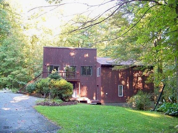 Privacy! Tucked in the woods is this distinguished contemporary accent level home perched next to a mature forest on a meandering creek! Trillium in the spring, beautiful foliage in the fall. An easy drive to Cornell, Cortland, Ithaca and even Syracuse! The Wolf range, hot tub, hardwoods, ceramic tile in the kitchen & baths enhance the cozy warmth of the wood stove and separate fireplace. Two level well designed open floor plan and lots of windows give an airy feel to the living space. A pleasing fusion of intimacy and practicality! master suite - Your own paradise!