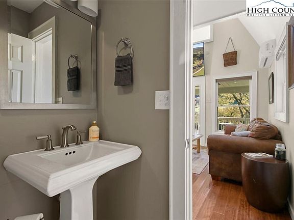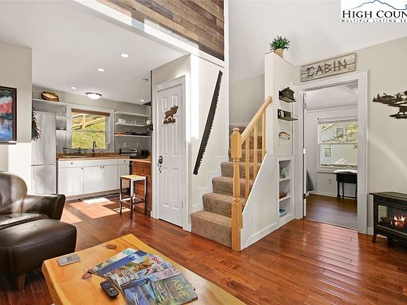 Welcome to Sasquatch Cabin! This tranquil riverfront retreat is nestled in the heart of the picturesque Blue Ridge Mountains. A charming riverfront 1-bedroom+ loft (both queen beds) 1 bathroom home. Rare New River frontage and privacy make this property one of a kind. Should you decide to venture beyond the peaceful confines of the cabin, downtown West Jefferson offers a delightful escape with local BBQ, brews, and boutiques. Outside, enjoy beautiful scenic river and mountain views, and relax by the fire pit or take a leisurely float down the river! Please no drive by's due to the home being on a short term rental program. Furnishings negotiable.