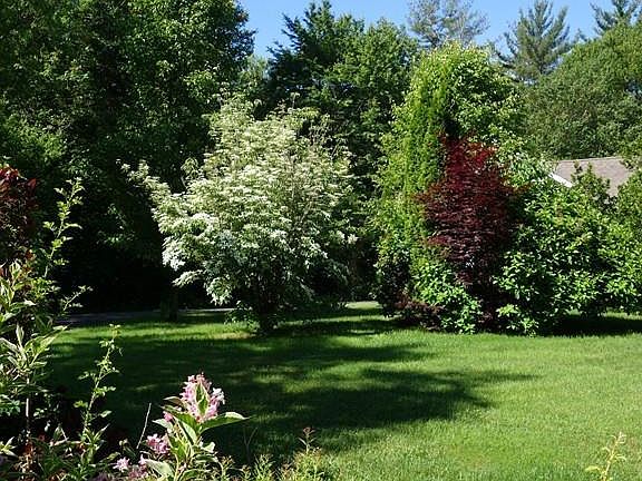 The Winner: Contemporary 3 bedroom ranch, built in 2004 and continuously upgraded, is sited on 2.8 acres with brook & with landscaped area around house & shared, paved driveway. Tall arbor vitae provide privacy border between two properties while ornamental trees & bushes decorate irrigated lawn along driveway to front entry along road leading down slope to 2-car garage & more parking.. Intelligent floor plan features open concept floor plan with two bedroom & bathroom wings, including MBR w/ MBth adjoined by south facing, 3-season, screened porch. Central common space touts formal LR w/ gas fireplace trimmed in marble & modern eat-in kitchen w/ all the bells & whistles with views & deck access to Goshen stone patio w/ cultivated gardens. Lower level walk-out is exceptional: features picture window views to backyd along w/ 3rd bedroom + bath, radiant floor heat under tiled floors. Other amenities include: oak floors, A/C, crown molding,Buderus boiler, generator & high speed internet.