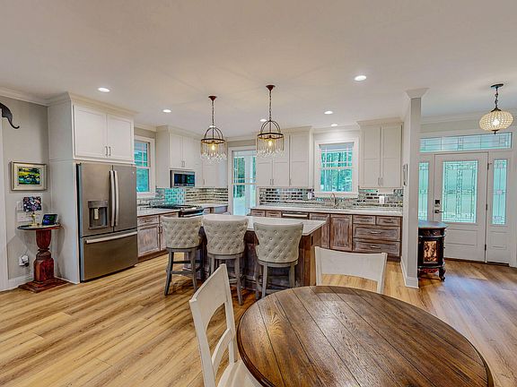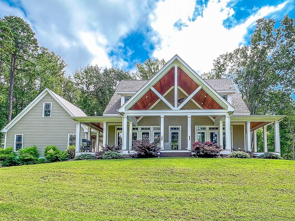 Mayo Lake Retreat where timeless design meets natural beauty. Nestled on a coveted 1.8-acre point lot, this home offers sweeping panoramic views of the water. Expansive wraparound porches invite you to linger outdoors, savoring sunrise coffee and sunset wine in complete tranquility. Inside, the home is appointed with refined finishes and thoughtful details. The gourmet kitchen boasts quartz countertops, custom cabinetry, and premium stainless steel appliances, opening seamlessly to the living space where a gas fireplace creates warmth and ambiance. Generous storage is woven throughout the home, with large walk-in closets and well-planned spaces to keep life beautifully organized. A detached garage with extra side storage enhances convenience and flexibility, it's current use is as an art studio! Whether cherished as a private retreat or shared as a gathering place, this lake house is a sanctuary of comfort, elegance, and breathtaking views. 355 Fishermans Point Road, Roxboro, NC is ready for you to call it home.