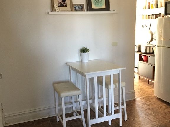 Super convenient, sunny apartment located above Gaia restaurant. Landlord pays water. Easy walk to train. Owner pays for trash removal, water. Tenant responsible for cable tv, credit check, electricity, gas, heat.