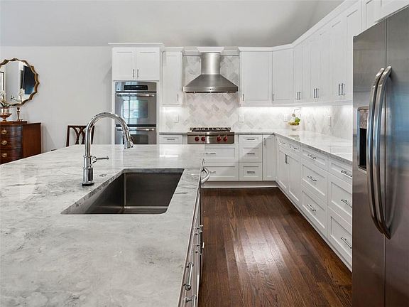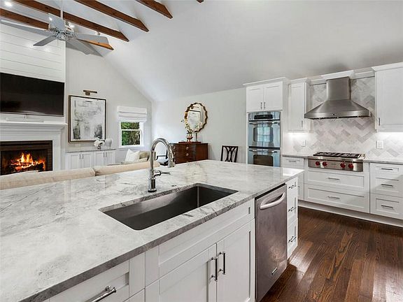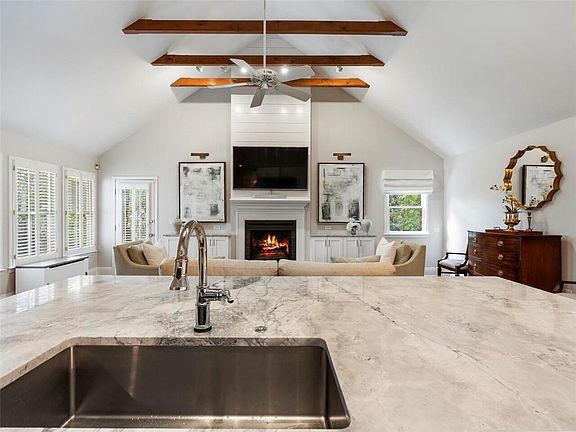 - Kitchen Features: Breakfast Bar, Eat-in Kitchen, View to Family Room, Stone Counters, Kitchen Island, Keeping Room, Cabinets White