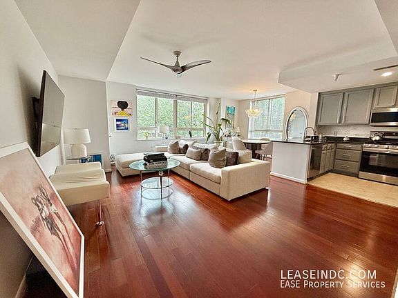Experience elevated city living at Potomac Place, a modern condo community in the heart of DC's Southwest Waterfront. Located in the newer tower at the complex constructed in 2005, this fully renovated two-bedroom, two-bathroom unit features dual primary suites and high-end finishes throughout. Just a few blocks from The Wharf, you'll have premier dining, shopping, and entertainment right at your fingertips. This is city convenience and comfort at its finest. Apartment Features: Beautiful hardwood floors throughout Entry hallway with large coat closet Sizable living room with tons of natural light from the oversized windows Plenty of space for a large dining table Renovated kitchen with granite countertops, stainless steel appliances and bar seating First primary bedroom features two large closets and an ensuite bathroom with dual access via bedroom and entry hallway for guests Second primary bedroom on opposite side of apartment has a large walk-in closet and ensuite bathroom Full sized, newer washer/dryer in unit Central heating and cooling Building Features: Newly renovated lobby Fitness center with yoga/dance studio Community center with flat screen TV Business center with printer and free WiFi Outdoor pool Secure bicycle storage room Laundry room Parking: Street parking. Off-street parking is occasionally available for rent from other unit owners, however we can not guarantee the availability or pricing. Utilities: Water is included in the rental amount. Tenant is responsible for gas and electric Lease Terms: Available September 1st. Minimum 12 month year lease. Application fee is $35 and includes a credit check. Pets are considered on a case-by-case basis pending approval by Owner. Tenant is responsible for any applicable building moving fees. Location: Potomac Place Towers are just 2 blocks from both the brand new Wharf developments, Waterfront Metro (Green line), Safeway and CVS, a short walk to Federal Center SW Metro (Orange/Silver/Blue lines). Also convenient to the National Mall, Nationals Stadium, The Yards, and several Government Offices (HUD, DOE, SBA and NASA).