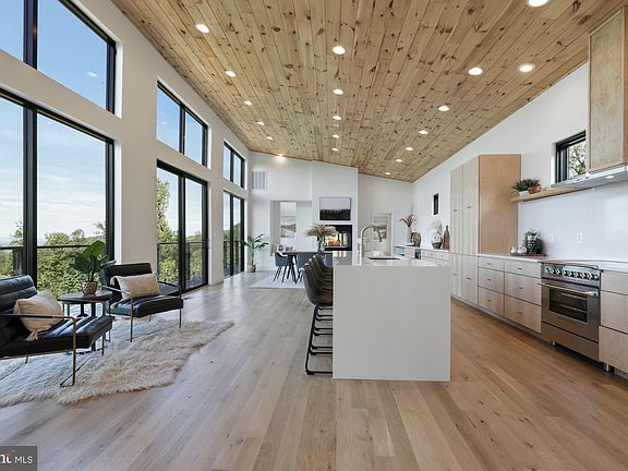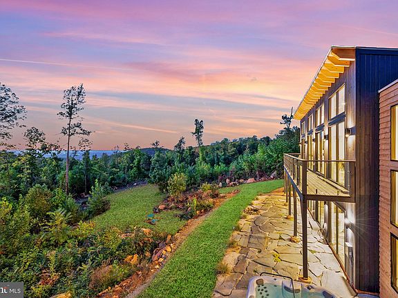 Welcome to Greenstone Getaway - a brand new masterpiece of contemporary architecture with magnificent panoramic western mountain views located in Bluemont, Virginia. Peaceful, private, stunning and ideally located on the Western slope of Blueridge mountain road, this residence commands the same acclaimed views as Bear's Den overlook on the Appalachian trail - offering daily breathtakingly beautiful sunsets. Just minutes from Route 7, the award winning Bear Chase Brewing Company, less than an hour's drive to Washington DC, and located just 1/2 mile from Mt Weather FEMA headquarters - one feels worlds away at this pristine, truly a work of art retreat. A nature lover's paradise, and nestled in the Blue Ridge Mountains, enjoy unobstructed views of the beautiful Shenandoah Valley, all the way to the Alleghany mountains. Relish each season's changing foliage, and observe wildlife in their undisturbed habitat. This spectacular four-bedroom residence was built around a greenstone boulder - visible in the lower level - creating harmony between the natural land and the building. Uniquely designed as a combination of Scandinavian and Japanese design, it is a stellar example of Japandi architecture - the entire residence is a work of art and highlights the beauty of mother nature. This design fusion between building and setting creates the perfect blend of function and form, focusing on clean lines, bright spaces, simplicity - all sustainably designed and built. The main level has white oak floors milled at Cochran's Lumber in Berryville, Virginia & were finished and sanded in place. The ceiling and beams are constructed of Tennessee Pine, a 2 story wall of Portuguese Cork offers design & function. A stunning double-sided Majestic wood-burning fireplace with a poured-in-place concrete hearth and surround & pocket doors enclose a living room with 3 walls of windows on the North end of the home. A stylish kitchen, dining, and living space comprises the largest area of the main level - with high-end appliances, white quartz countertops, a large waterfall island, custom milled Kabinart Cabinetry from Nashville Tennessee and floor to ceiling windows. The primary bedroom is located on the main level - with private deck and en suite bathroom with radiant heated floors , a custom reclaimed wood vanity designed by Dave Jones of Brooklyn, New York and large shower room of porcelain tile with soaking tub. A gorgeous floating staircase with 1/2" tempered glass leads to the lower level. The home is passive solar in design, built into the side of the mountain to retain coolness in the summer and warmth in the winter. The centerpiece of the lower level and true heart of the home is the natural greenstone boulder which has existed in this location for millions of years, the house was designed and built around this boulder. The "boulder" room enjoys built in seating, shelves, windows, and glass door to the patio and spa. A large second and third bedroom with windows, doors to the patio and attractive wabi sabi concrete floors are also located on the lower level. Bedroom three has ensuite bath with heated towel rack and kitchenette - making it the perfect guest suite. A dedicated laundry room, and flexible bonus 4th bedroom/office/studio/gym space are also located on the lower level. A handsome flagstone patio with stepable plantings that will flourish in the coming years runs the length of the home. Enjoy sunsets from the 8 person Jacuzzi spa, outdoor fires, upper level decks and views for miles and miles. The rear yard provides an excellent location for future pool - endless possibilities. Bluemont, Virginia straddles Loudoun & Clarke Counties. Bluemont is one of Virginia's most beloved & picturesque villages. Tucked into the side of the Blueridge mountains, Bluemont has a unique protected feeling and was once a popular resort destination in the early 1900's and was the final destination of the W&OD Railroad.