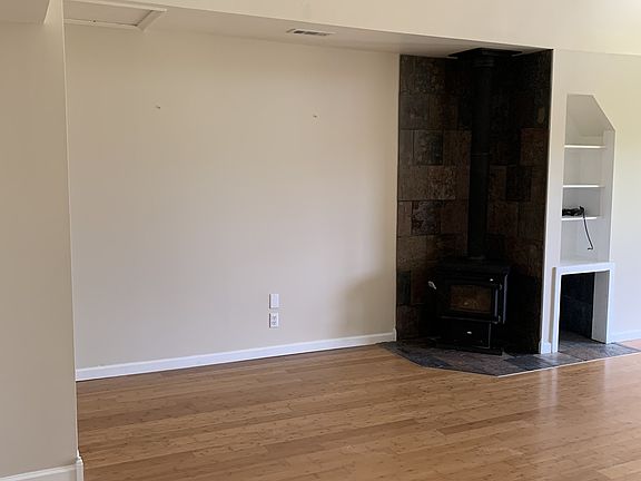 PRIVATE SETTING-2 bedroom, 2 bath home sitting on 18 +/- acres with open living room, dining room, and kitchen. Home has lots of windows to allow for natural lighting. Kitchen w/all appliances, pantry, and concrete counter tops. Perfect home office w/barn doors. Both large bedrooms have double closets. Sitting area upstairs w/wood burning stove and sliding doors to balcony. Front entry and side mud room from the patio area. Living area flooring cut into individual squares & hand-laid.