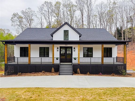 New Construction! A beautiful custom build in Pinnacle, NC built by Mason Contracting Co LLC. 3 bedrooms and 2 baths with room to expand into the basement. Freshly seeded yard. Stainless European designed kitchen appliances by Forno. Custom closet system currently being installed. Large open living and kitchen concept with a 10ft kitchen island. Butler pantry with sink and storage. Marble counter tops and tile backsplash. 10-foot ceilings throughout. Luxury vinyl plank and tile flooring. Trex composite decking on the porches. Superior basement walls with warranty. Primary suite featuring a lot of natural light including bathroom with walk-in shower and free standing tub. Enjoy your peaceful evenings on the covered back porch. Basement is plumbed for a full bathroom and could be finished to add 1,100 more heated square feet. 2 car basement garage with wrap around concrete driveway. Property also being offered for $629,900 with two additional building lots totaling 2.74 acres.