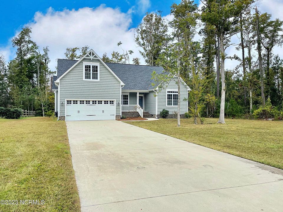 The lower-level master bedroom features a luxurious en-suite bathroom with a soaking tub and separate shower, while two additional bedrooms provide space for family or guests utilizing a shared bathroom. A versatile bonus room with a half bath can serve as a playroom, home office, or guest area. Outside, the covered rear porch overlooks the vast backyard, providing a serene spot to enjoy nature. The encapsulated crawl space and ample attic storage add practicality to this charming home. Experience the best of rural living with easy access to city amenities. Interior of home has recently been completely repainted. Don't miss your chance to call this delightful property home. Schedule a viewing today!