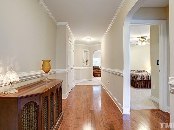 Beautiful Home in Southern Oaks! Hardwood Floors, Crown & Cathedral Ceilings. Kitchen offers Granite Counters w/Breakfast Bar, Stainless Appls, Pantry, Recessed LED Lights w/Dimmers. Family Room w/Fireplace. 1st Floor Master w/Fresh Paint, Walk-in Closet, Double Vanity, Garden Tub, Sep Shower. Nice Size Bedrooms w/Good Closet Space. 2nd Floor BR/Bonus w/Bath & Walk-in Closet. Upgraded Garage Door Opener & Added Peg Board. Motion Outdoor Lights. Patio w/Wooded Views. Nearby Parks,Trails & Downtown Fuquay!
