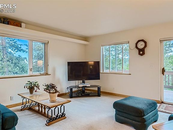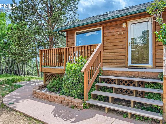 Beautiful Mountain home sitting on a private 1 acre lot with stunning Pikes Peak Views. Enjoy the views and everything this property has to offer from either the front deck or huge rear deck, Fenced in yard, lots of trees, oversized 2 ½ car heated garage, storage shed and lots of landscaping all around the home. Walk in the front door and be greeted with a large eat-in kitchen, hardwood floors, vaulted ceilings, massive living room and primary bedroom that both have access to the deck, 5 piece primary bathroom and even has a main level laundry room. Venture down to the lower walk-out level and see the spacious family room with built in shelving, gas fireplace and access to the lower patio. Two additional bedrooms in the lower level and a ¾ bathroom and utility room as well. Come and enjoy this well loved home and make it yours.