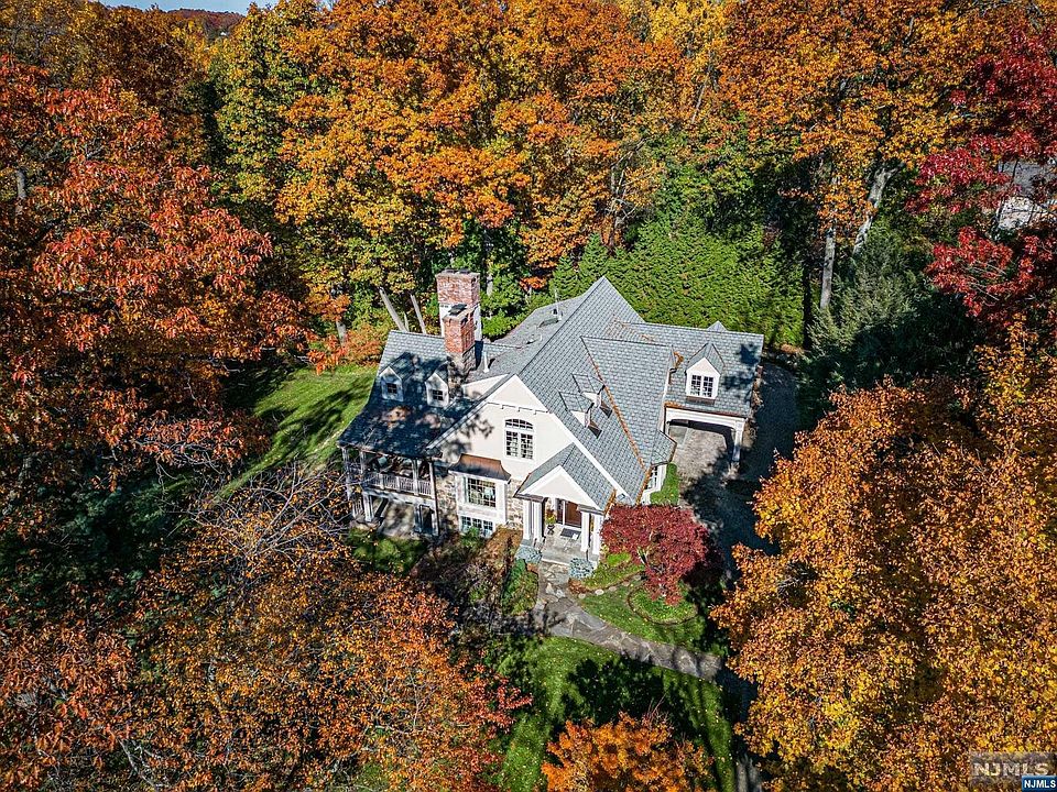 Total privacy awaits at this welcoming and sophisticated custom-built, 20-year young expansive colonial nestled on a picturesque half acre at the end of a cul-de-sac. The stunning exterior facade consists of natural stone, stucco, gorgeous chimneys, copper gutters, a deck and two covered front porches that connect the home to all aspects of surrounding nature. The heart of the home consists of a great room with 18-foot ceilings attached to the gourmet kitchen with an eat-in nook. A grand living room with fireplace, dining room, mudroom, and laundry rounds out the first floor. The primary suite features a vaulted ceiling, a large walk-in closet for two, and a spa-like bath. Walkout basement with gym, 2 large living spaces with fireplaces, and French doors onto the side hill. Notable features include Porte-cochere, 5 fireplaces, 3 car attached garage, hardwood floors, and first-floor bedroom/office. All this and a prime location in the coveted Old Country Club section of Ridgewood!