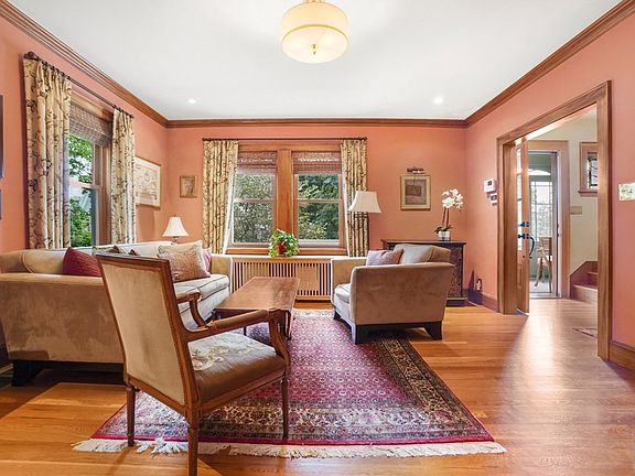 OPEN HOUSE CANCELLED SELLERS HAVE ACCEPTED OFFER.Incredible, professionally landscaped gardens frame this charming Colonial. Enter through a sun-filled enclosed front porch that leads to a spacious living & dining area w/ meticulously maintained built-ins & beautiful period details. The eat-in kitchen has plenty of natural light & a great layout w/ tons of potential for updates. Finishing out the first floor is a side entrance with a mudroom & half bath. Upstairs there are 3 great sized bedrooms, 1 has been converted to a home office w/ custom build-ins for files/ books etc. Continuing up to the 3rd floor is a bonus room offering flexible space as a 4th bedroom, playroom or den. The highlight of this home is the abundance of outdoor space.The garden is filled w/ relaxing spots to unwind & entertain, a koi pond, a relaxing stream, fire-pit area & a newly built upper deck w/ a great view of the gardens. 1 car garage and 4 more off-street parking spots complete this gorgeous property