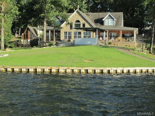 Lake living at its finest! Big water views with approx 375ft of waterfront with a new seawall. This spacious, custom-built home sits on 1.05-acres and boasts over 4200 sqft of living space; 4 bedrooms and 2.5 baths with storage everywhere! There is a covered outdoor kitchen and a patio with a fire pit. Wide porches (12ft deep) offer shade and plenty of room for entertaining. There is a double slip boathouse and a wired workshop with over 1000 sqft that is a handyman's dream. There is also a huge bonus room upstairs (36x16) as well as an attached 2 car garage. Master bedroom located on the main floor is over 16x17 with plenty of room for a sitting area plus a large walk-in closet. The master bath has double sinks, an extra big, tiled shower with triple shower heads and a tiled bench. The living area has breathtaking views through two-story windows and a stone fireplace. The open concept kitchen is extra-large (15x20) has it all with white, custom cabinets, stainless steel, Jenn air appliances, double ovens, 5 burner gas range, pot-filler at the range, granite countertops and tiled backsplash. A separate sink in the large (4x8) island makes meal preparation a family affair. There is also a great walk-in pantry. Large laundry room has a counter for folding and plenty of room for your ironing board. Home was built for energy efficiency as well as beauty. Exterior walls were constructed using 2x6, instead of 2x4 lumber. The exterior walls, attic, and crawlspace are also filled with sprayed-foam insulation and are fortified to withstand 150mph straight-line winds. The heart of pine floors were specifically prepared for this home. The wood ceiling in the great room is spectacular and pulls together all the natural wood trim and doors throughout the home. Located in the outstanding Holtville school district with easy access to Wetumpka, Prattville, and Montgomery. Words do not do this home justice. It is a must-see if you are considering Lake Jordan for your next home.