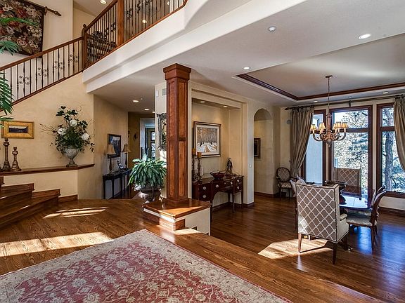 Unbelievable secluded cul de sac site nestled amongst the pines, PLUS amazing mountain views. Lovely cascading waterfalls greet you at the entry. Perfect family home with great updating. Meticulously maintained by original owners - excudes charm and character, sunlit throughout, reminiscent of a Tuscan Villa. $400,000 spent on the walkout level alone so you can only imagine how awesome it is!! Walls of retractable windows marry the indoors with the outdoors; wine cellar and grotto with dining area that seats eight. Main level boasts an open floor plan perfect for entertaining as well as family gatherings; stately masculine library. Master suite boasts a warming fireplace, overlooks majestic mountain views, towering pines and wide open vistas. All bedrooms have a private bath. Lovely outdoor entertaining areas and wrap around deck.