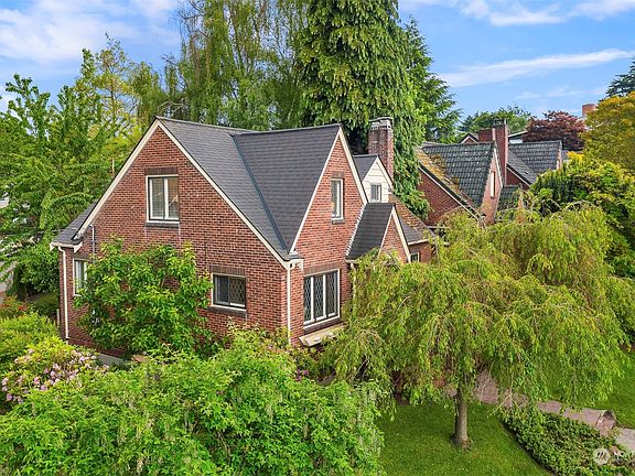 Charming brick Greenwood home owned by the same family for over 70 years & for good reason. Adorable 2 story with unfinished basement, attached garage & backyard oasis in an incredibly accessible location walking distance to Greenwood & Green Lake amenities. Come inside to find original oak hardwoods, leaded glass windows, cove ceiling details & 92 year old un-painted mahogany millwork & doors. Kitchen has original breakfast nook area & access to the covered back deck & yard. Full bath & bedroom on the main floor with 2 additional bedrooms upstairs with a 3/4 bath.  Endless opportunities in the unfinished basement with good ceiling height. Attached 1 car garage also offers opportunity for fitness room, hobby space or vehicle parking.