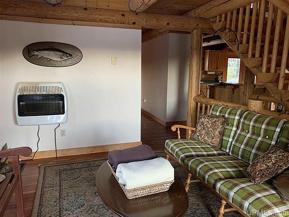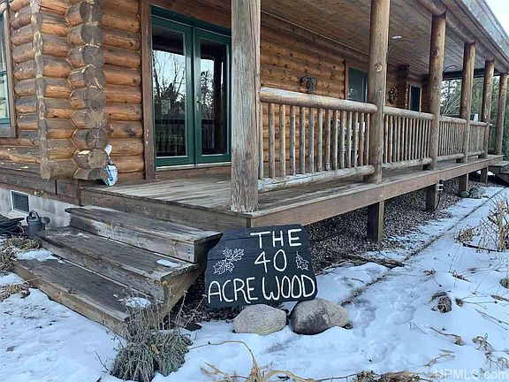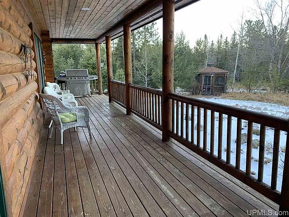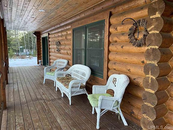 If you are looking for a home or cabin where you can enjoy total privacy, look no further! This 3 bedroom log cabin was stunningly built in 1997. The large front porch lines the front of the house and faces nothing but your private property was destined for you to sit and enjoy your morning coffee while listening to the birds sing. Once you enter the home, you will be in awe of the log beams used throughout; the staircase looking up to the master bedroom loft is a stunning sight! Vaulted ceilings and open concept layout shape the main floor. The kitchen opens right up to the living room and dining room and gives you direct access to the back porch. Off the living room which has a gas fireplace to keep you cozy on those cold winter days, you will find a spacious office on one side and on the other side is a bright sitting room. Up the beautiful log stairs, you will find the loft style master bedroom with an open dressing area and closet along with a master bath complete with a large custom tile walk in shower. The finished basement provides an extra (non conforming) bedroom, a large family room, laundry room, bathroom, and room to provide you plenty of storage! No U.P. home is complete without a Sauna, and this home has a beautiful one! The finished attached two car garage lets you in and out of the house without being exposed to the elements. From there you can access the heated workshop as well as the third bedroom/apartment above the garage which has a 3/4 bath and small kitchenette, perfect for guests! If you need room to store your toys, you will love the huge pole barn on the property as well. With nearly 40 acres, you will love to explore your woods and enjoy the wildlife. You have to see this property to truly appreciate it, schedule your showing today!