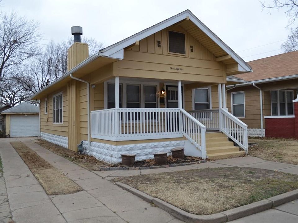 Clean, Clean, Clean and...Updated. This two bedroom 1 bath bungalow is move in ready. Outside you have an oversized one car garage with opener,110, 220 outlets and a workbench. Fenced back yard and extra storage shed too. Inside wiring has been updated and newer breaker box installed. Kitchen and bathroom updated. Central heat and air. A/C Replaced last year. Old style decorative fireplace with built in cabinets on either side. And don't miss the pocket French doors leading to the formal dining room.