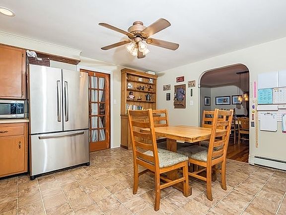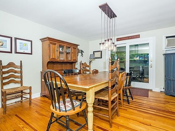 This picture perfect ranch exudes charm. The formal Living and Dining rooms offer hardwood flooring. Sliding doors from the Dining room open to a patio and fully fenced , private rear year. The spacious updated kitchen boasts stainless appliances and a separate eating space and opens to a large family room complete with wood-stove,tile flooring, beautiful pine built-ins and paneling and Double French door access to the front walkway. Hardwood flooring continues through the two bedrooms. The fully updated bath features a double sink vanity, tile flooring and a tub/shower.Other amenities include baseboard hot-water heating, updated designer lighting fixtures and many new windows. Move right in and enjoy!