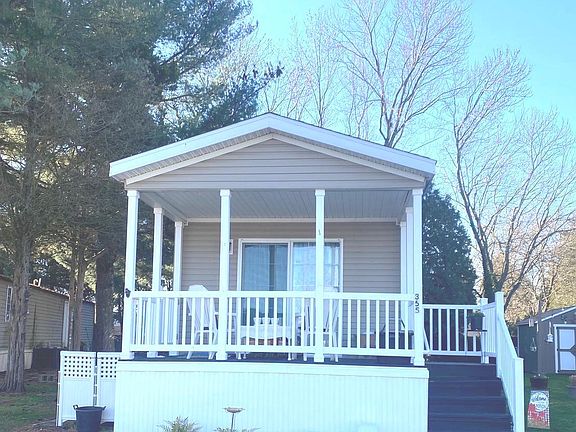 Looking for an updated and affordable place to live? Look no further! This 2 Bedroom, 1 Full Bath Manufactured home, with a two car driveway/parking and a lovely front porch is available for anyone to purchase! You do NOT have to be over 55 years of age to live in this community! Pets are allowed and the location is perfect for easy transportation to all major highways! Curb Appeal will win you over when you drive through the community to the BACK of the neighborhood where the seller has maintained their lot and it is nice and quiet! Sit and enjoy your coffee or tea on the large front porch and then check out the open concept inside, with newer laminate plank flooring, stainless steel appliances, a large pantry, peninsula seating and tons of natural light! This home also offers one level living with the 2 bedrooms, 1 full bath and Front Loading Washer and Dryer accessible down the long hallway next to the side entrance. Both bedrooms have a ton of closet space and there is plenty of more storage outside in the shed too! Seller is leaving the kitchen table and chairs, along with the kitchen peninsula chairs, curtains and more! Purchaser to apply and be approved through Colonial Estates . The land lease includes water, sewer and trash removal. Call today for your appointment!